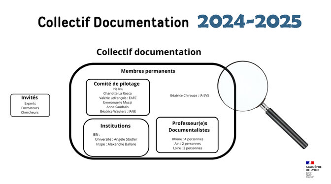 - Béatrice CHIROUZE : IA IPR EVS, en charge du dossier documentation